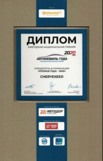 星途TXL荣获俄罗斯“2020年度最佳新车”