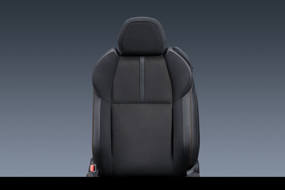 座椅采用高级真皮与奥司维®Ultrasuede面料拼接包裹,同样辅以黄色缝线,在提供优异包裹性与支撑力的同时,极大提升了车厢内的质感与运动氛围。